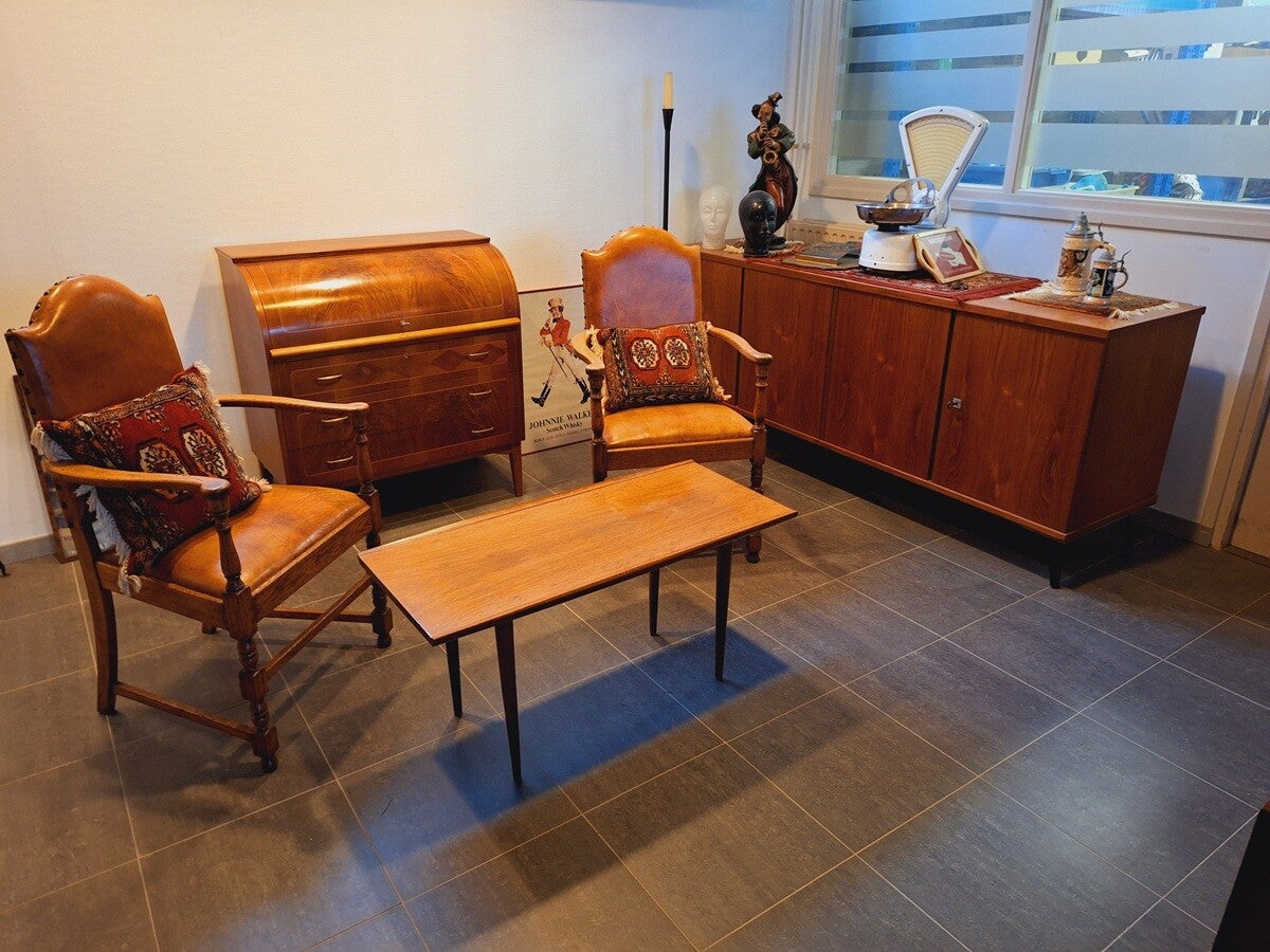 Vintage Fauteuil set/2 met voetenbankje